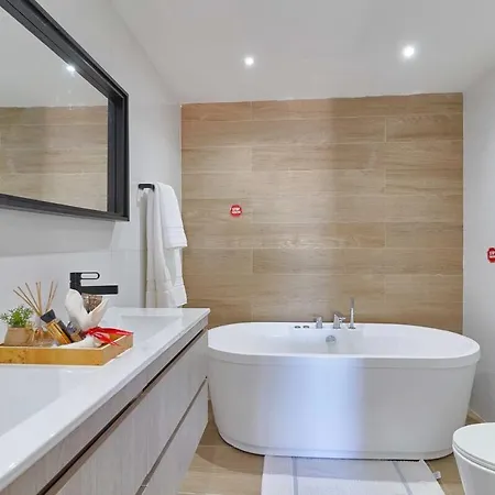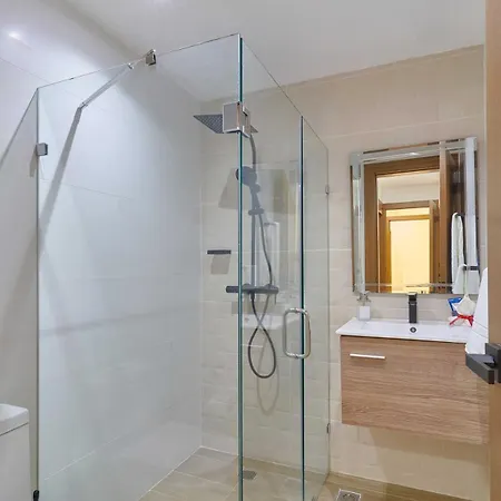 Il Lovely 3 Bedroom Apartment, Pool,Gym,2Parking S offre agli ospiti un balcone, un bar sulla terrazza e una zona spogliatoio, oltre a comfort moderni come un impianto di climatizzazione e una lavatrice. Gli ospiti di questa struttura potranno usufruire di asciugacapelli e asciugamani nel bagno. Inoltre, sono presenti un bagno con WC separato e una doccia.
